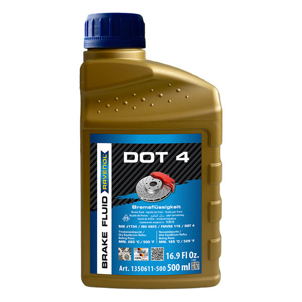 RAVENOL DOT is miscible with all known brake fluids of the same specification. To use the high performance level of RAVENOL DOT , a complete change of the brake fluid is recommended.