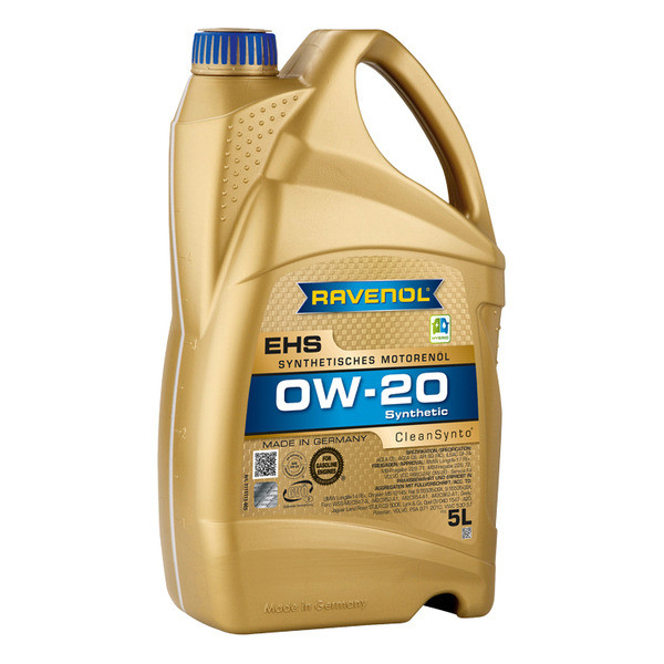 RAVENOL EHS SAE 0W-20 –  синтетичко лако течно моторно уље са малим трењем, произведено по технологији CleanSynto® за бензинске и дизелске моторе са и без турбонадувања.