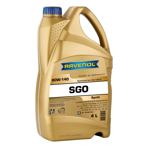 RAVENOL SGO SAE 80W-140 GL-5 – потпуно синтетичко уље за пренос за тешко оптерећене хипоидне мењаче на бази синтетичког уља са додатком посебног комплекса адитива против хабања (ЕР)