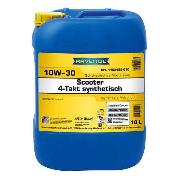 Уље RAVENOL SCOOTER 4-T SAE 10W-30 је погодно за употребу у свим четворотактним моторима скутера, мотоцикала и других моторних возила мале запремине. Може се користити у моторима са ваздушним и течним хлађењем.